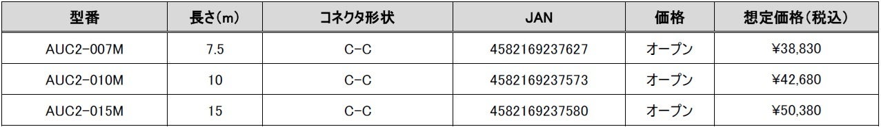 DP Alt & 10G対応 光ファイバUSB-Cケーブル 7.5m [型番:AUC2-007M] 、10m [型番:AUC2-010M]、15m [型番:AUC2-015M]