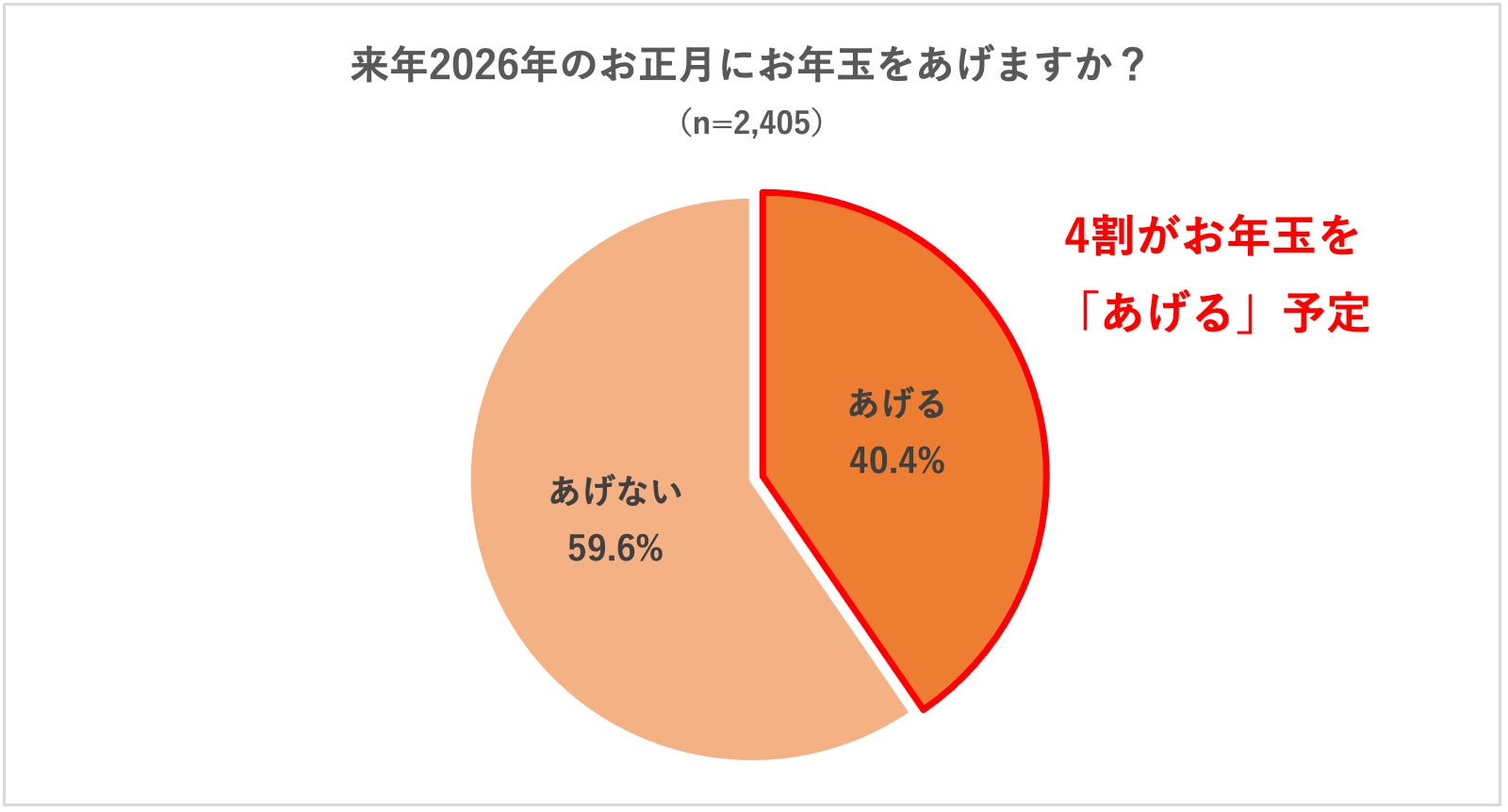 ②来年2026年のお正月は40.4%がお年玉をあげる予定。
