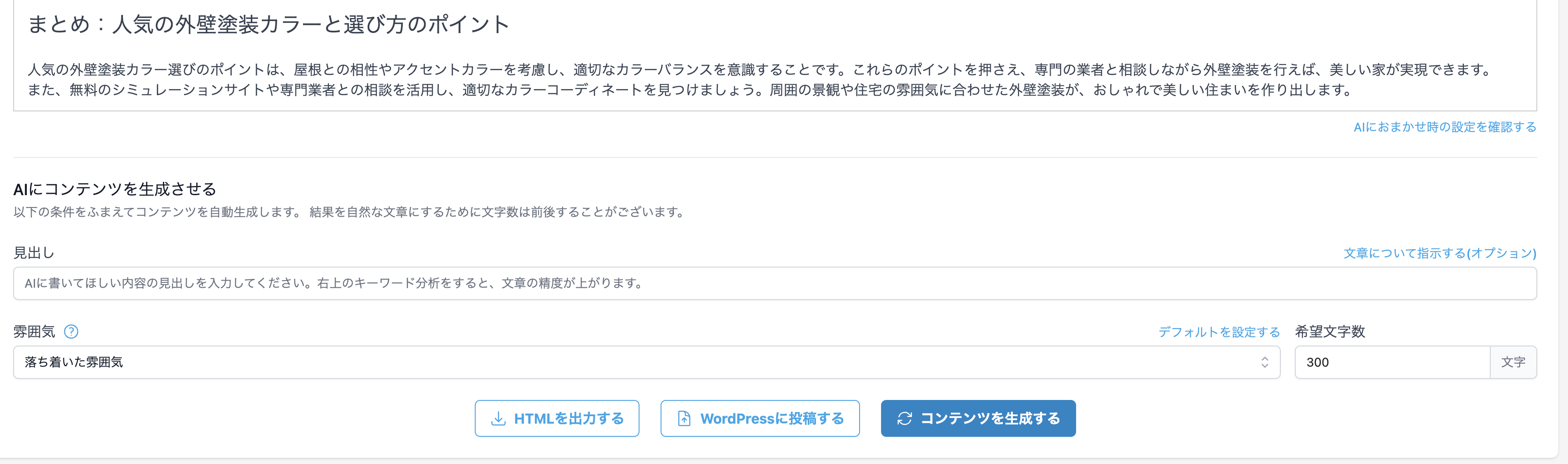 GPT-3.5ではなくGPT-4を利用し、競合サイトの分析結果をふまえて、SEOに強い文章を生成できます。