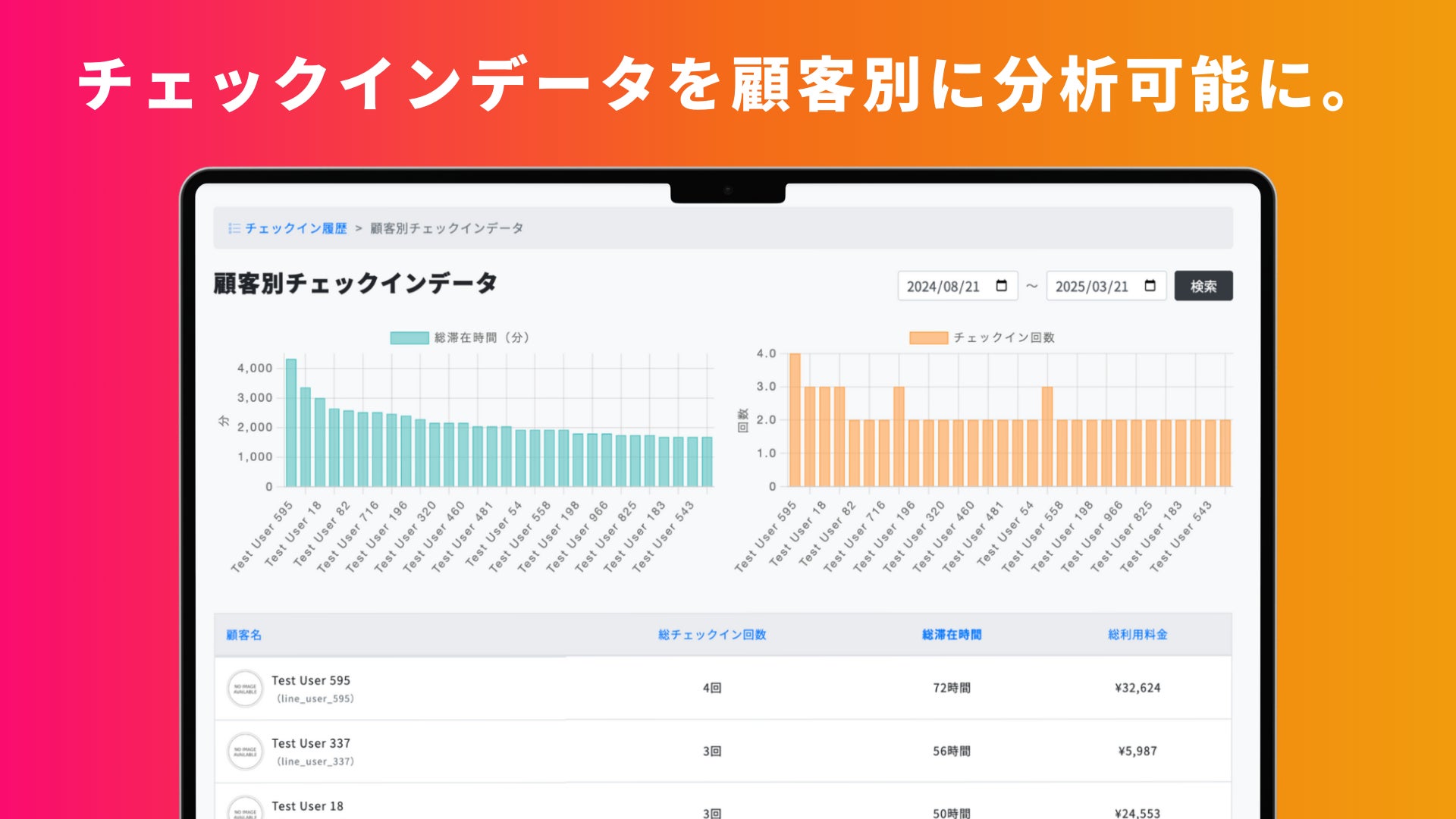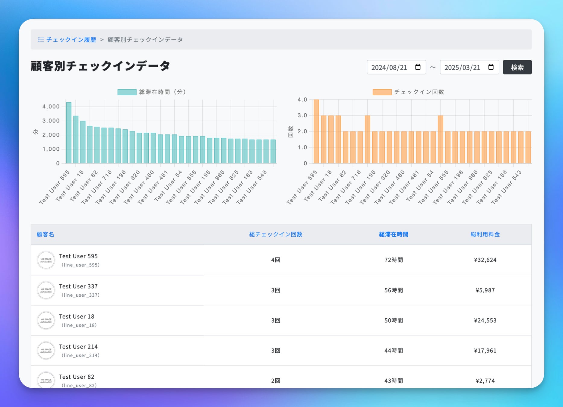 顧客ごとのチェックイン履歴を詳細に分析可能