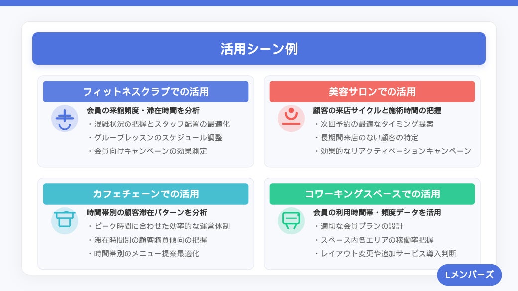 顧客理解の深化:個々の顧客の来店頻度、滞在時間、利用金額を正確に把握することで、顧客ロイヤリティの指標として活用できます。