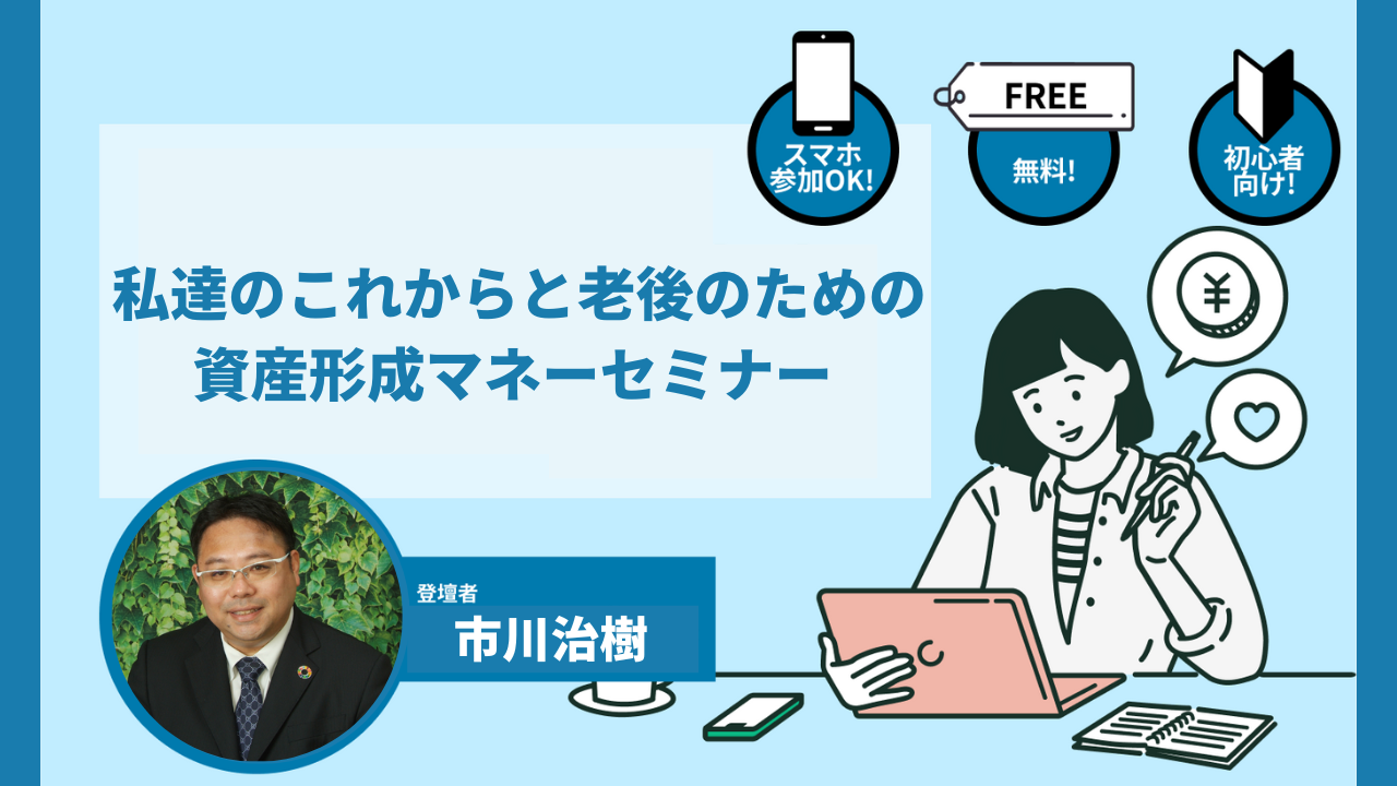 当日は、『携わった方全ての人を幸せに!!』をモットーに明るくセミナーを行なっている、講師の市川 治樹様を迎えて「私達のこれからと老後のための資産形成マネーセミナー」に関するオンラインセミナーを実施いたしました。
