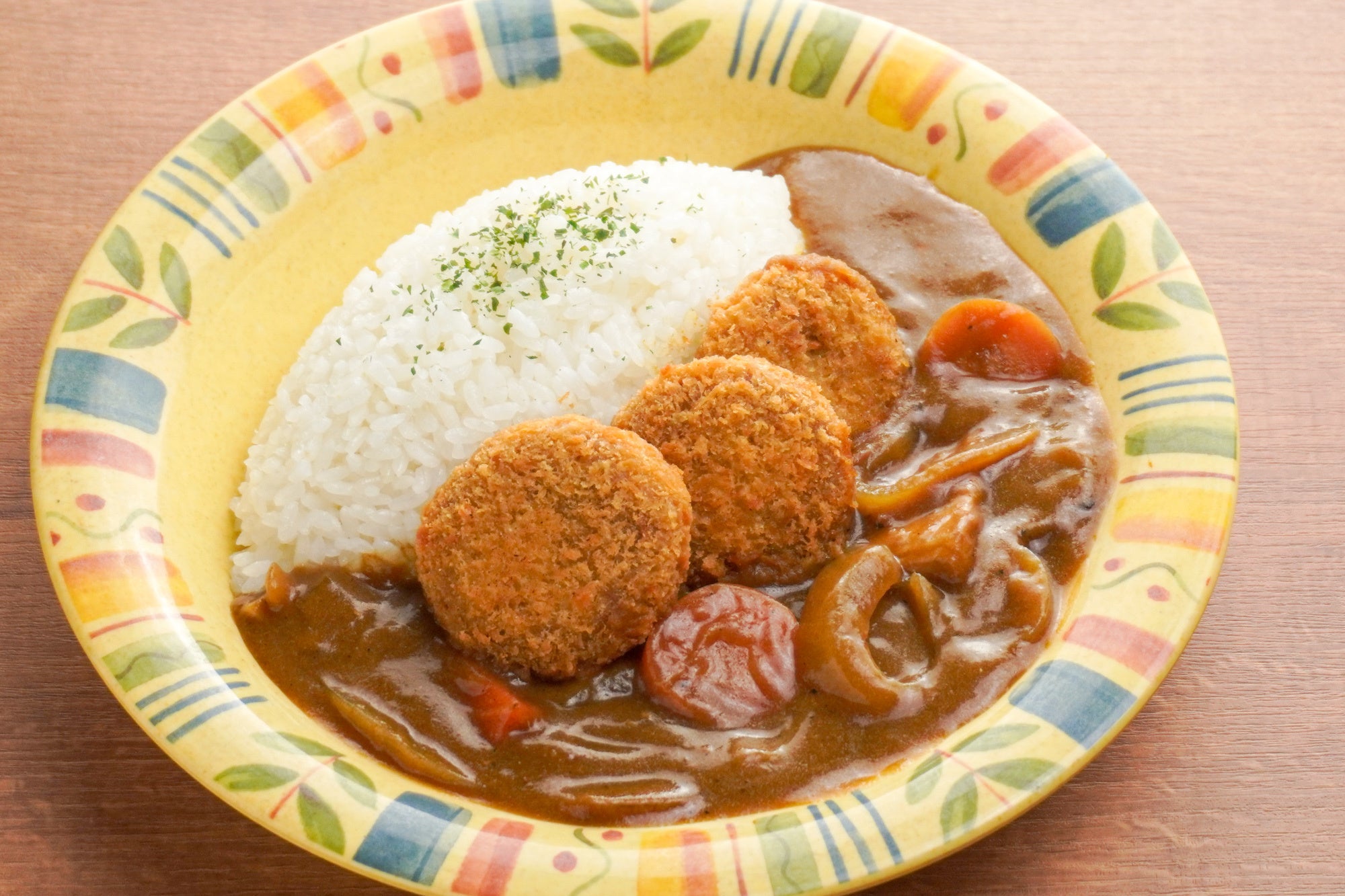 北見たまねぎ、道産にんじん、道産豚肩ロースを使用した自家製カレーに、食べやすいサイズの「たまコロプチ」をトッピングしました。