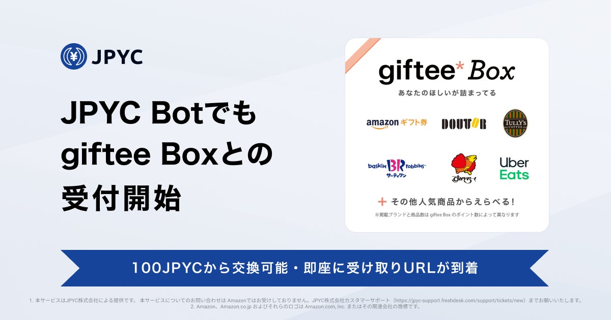 日本円ステーブルコインJPYC、JPYC Appに加えJPYC Botでもgiftee Boxとの交換受付を開始