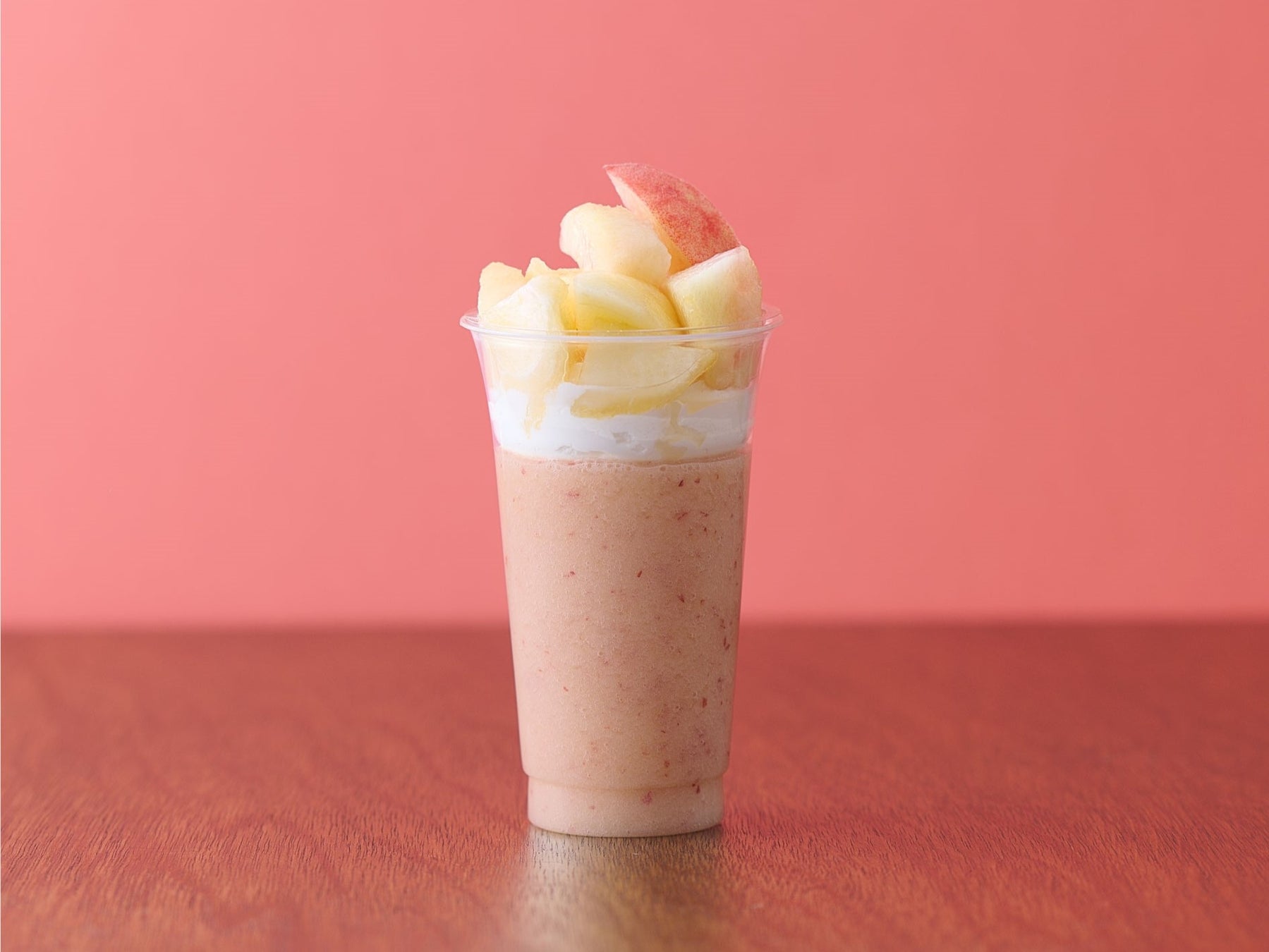 『旬の一果』は、店舗で完熟の桃を1つ1つカットし、ご注文を受けてからその場で皮ごとミキシングするこだわりのフレッシュジュースです。一口飲んだ瞬間口いっぱいに桃そのままの爽やかな香りと甘さが広がり、ひんやりと滑らかな食感が楽しめる、暑い夏にぴったりのドリンクです。