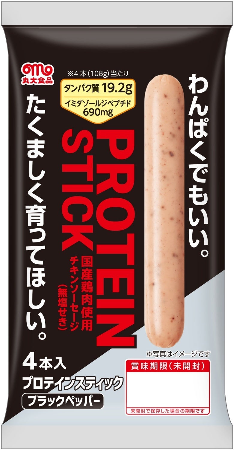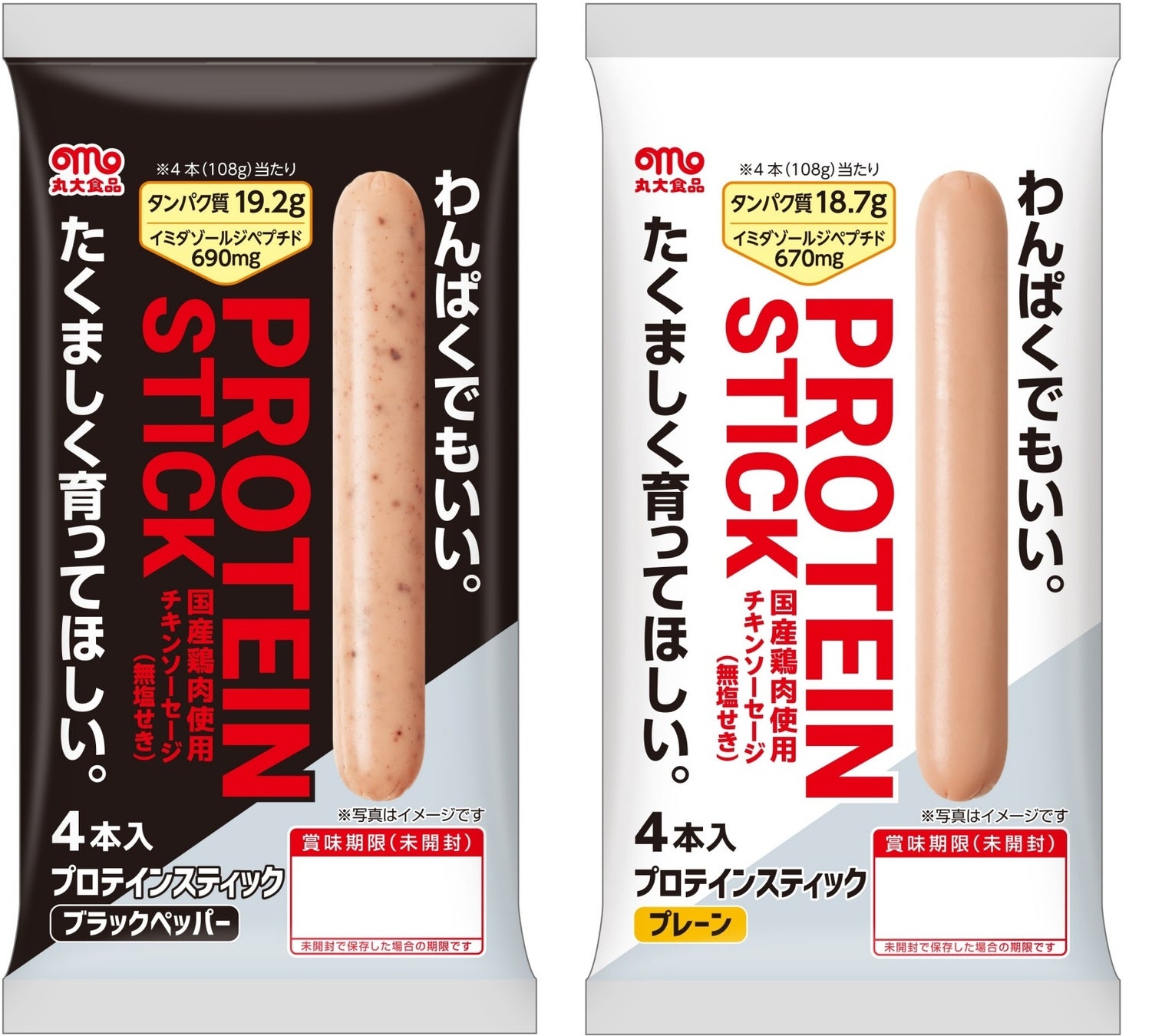 プロテインスティックは、たんぱく質を1袋(4本入り)当たり18g以上含有しており、おやつや間食として、
