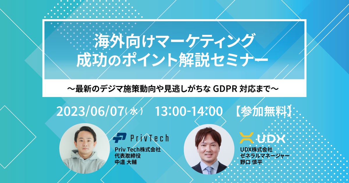 【共催Webセミナー】UDX × Priv Tech『海外向けマーケティング成功のポイント解説セミナー ~最新のデジマ施策動向や見逃しがちなGDPR対応まで~』6月7日(水)13時開催