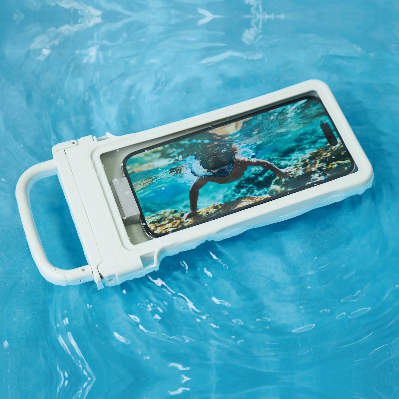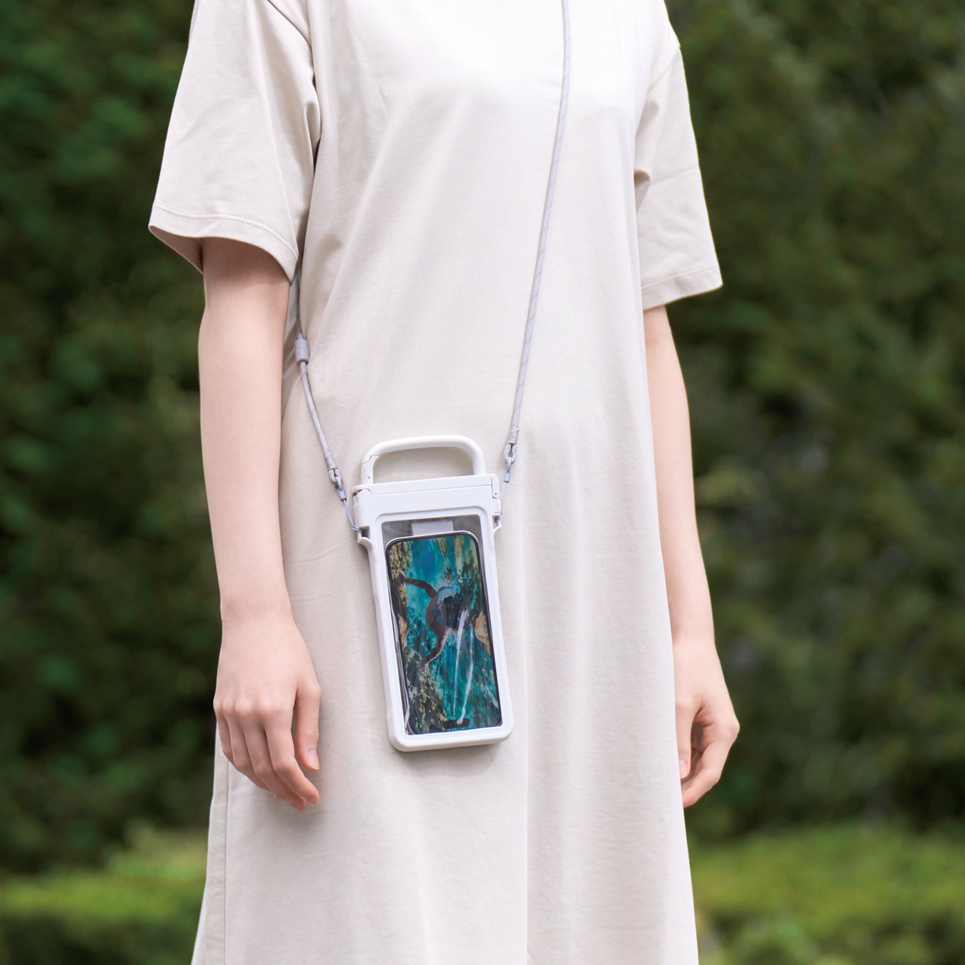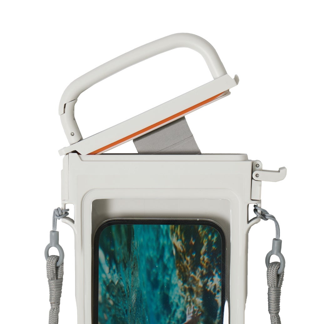 持ち運びやすく水中撮影・操作ができるカラビナ付き防水ケースです。