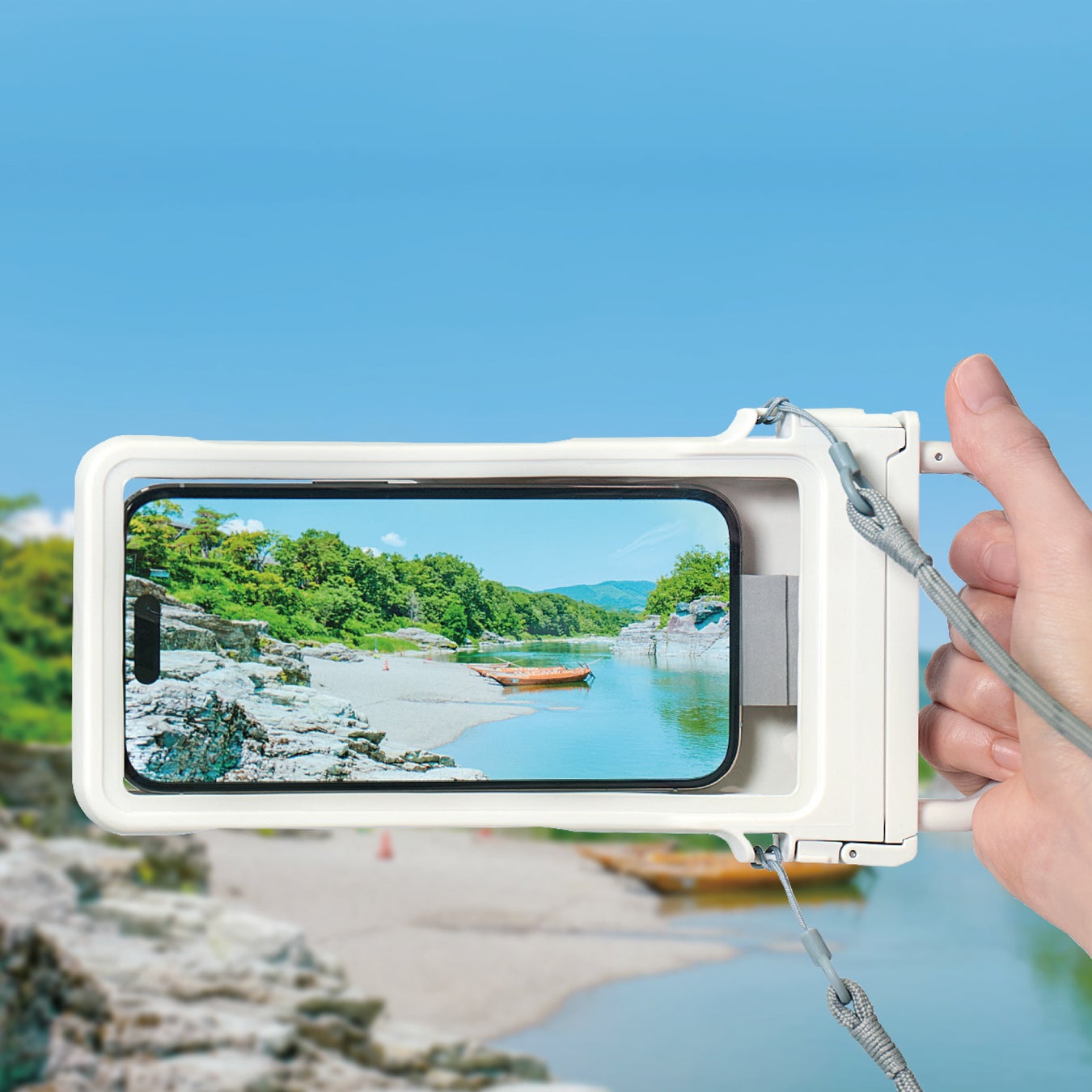 水辺のレジャーやアウトドアなどで大切なスマートフォンを守ります。
