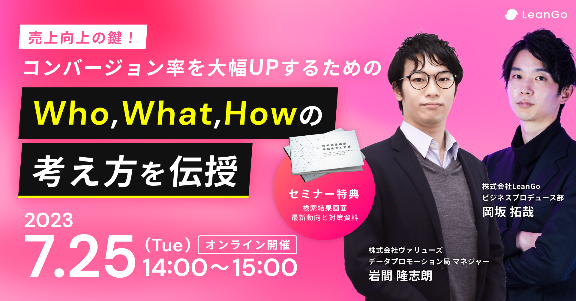 コンバージョン率を大幅UPするためのWho, What, Howの考え方を伝授 | LeanGoがヴァリューズとウェビナーを共催