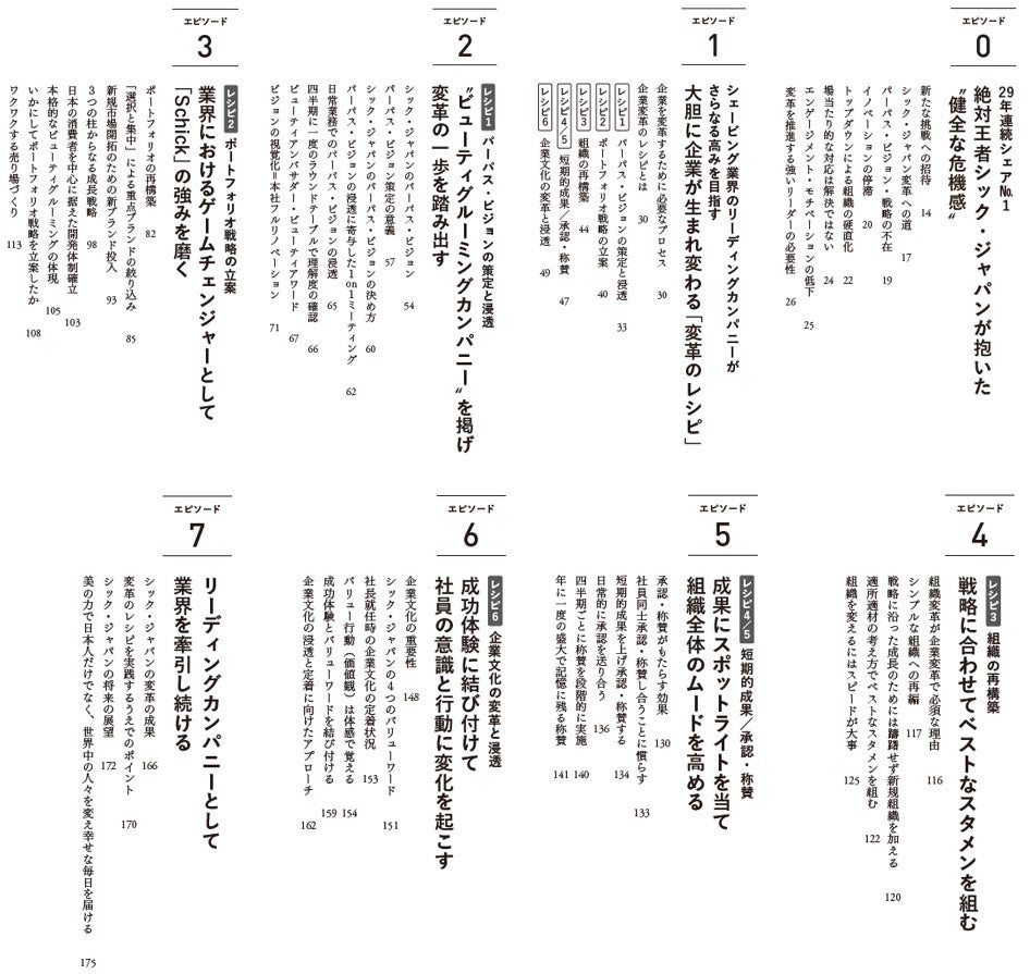 企業変革を成功させるには、料理のレシピ同様に、工程だけでなく“正しい手順”で進めることが必要不可欠です。また各ステップを順序通りに2年というスピードで着実に実行することも重要です。本書では、企業が大胆に生まれ変わる変革における各工程を“レシピ”と表現し、実践的な具体事例・プロセスとともに公開しています。
