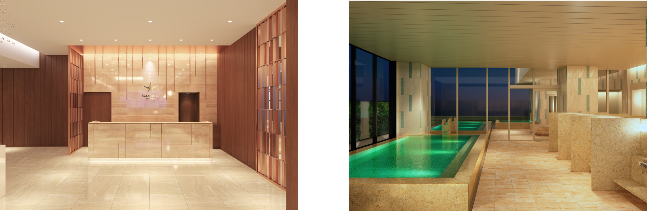 最上階には約55mからの眺望の露天風呂、内湯、水風呂、最新スペックのSAWO(サヴォー)社オートロウリュサウナを完備。また館内は随所に日本の匠の技術を生かしたデザインコンセプトで空間をトータルプロデュースしており、世界で唯一の“4つ星ホテル”としての上質さを体感することができます。