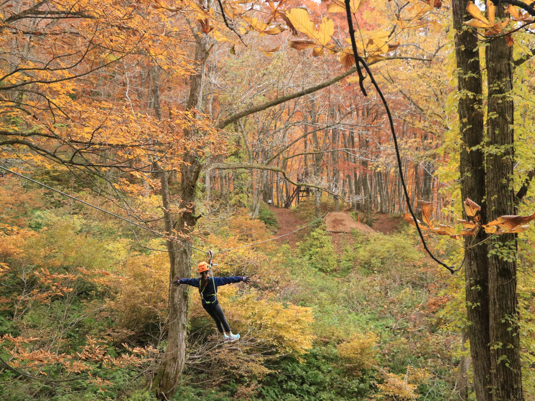赤や黄金色に染まった、高山植物園の散策やブナの森のトレッキング、ブナの森に囲まれた爽快なジップライン体験など、高原らしい紅葉の時期をアクティブに過ごすお楽しみがございます。また、園内の紅葉を絶好のフォトジェニックなスポットも点在し、色鮮やかな自然をの撮影もお楽しみいただけます。