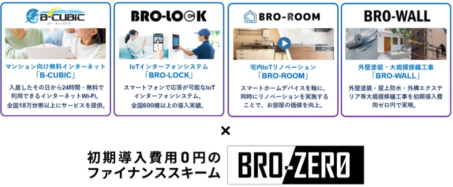入居率を向上させるサービスと、独自のファイナンススキームである初期導入費用ゼロ円プラン「BRO-ZERO」を掛け合わせ、オーナー様のキャッシュフロー最大化に貢献しております。