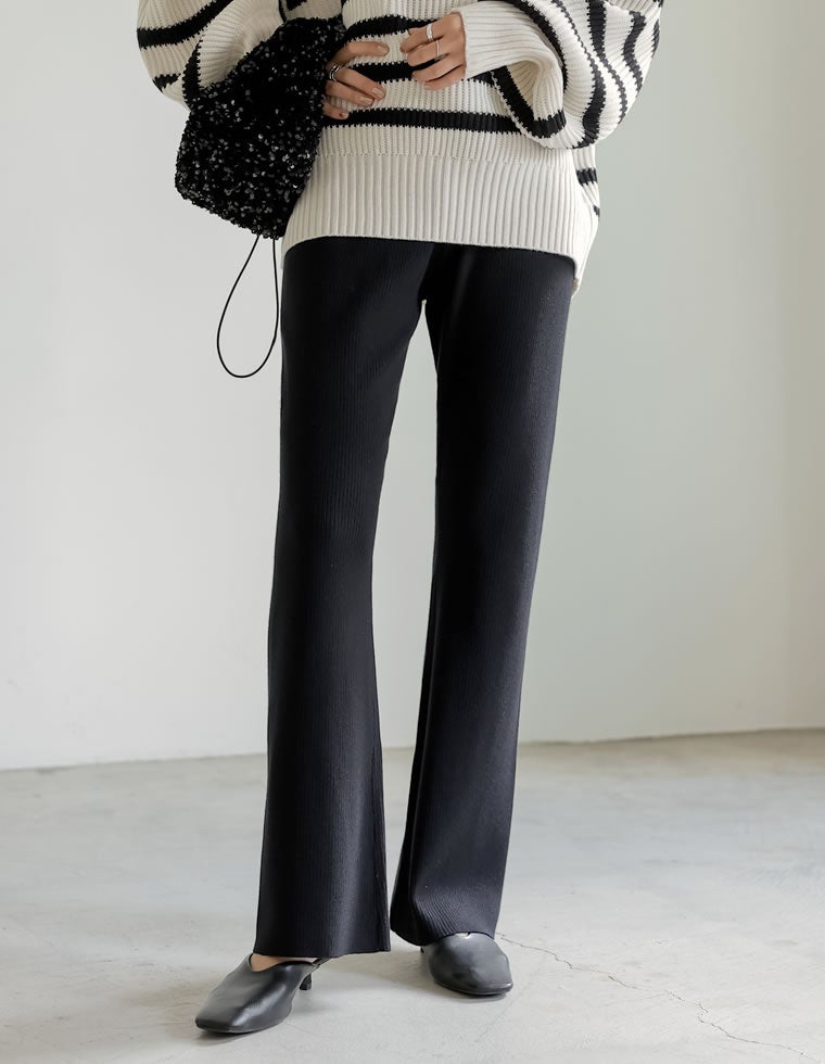 [低身長/大きいサイズ有]リブニットスリムフレアパンツ