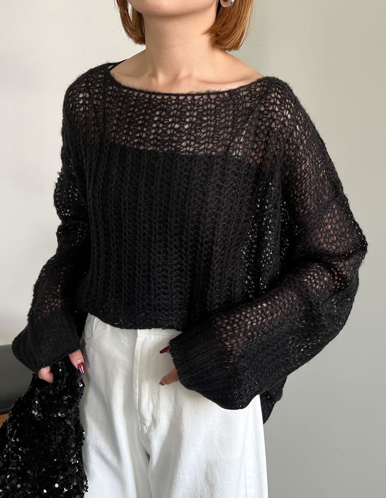 ふんわりと起毛がかった、柔らかなメッシュニットプルオーバー。