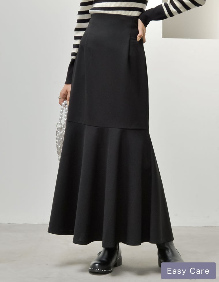 きれいめな印象ながら着心地はリラクシーに仕上げたマーメイドスカート。