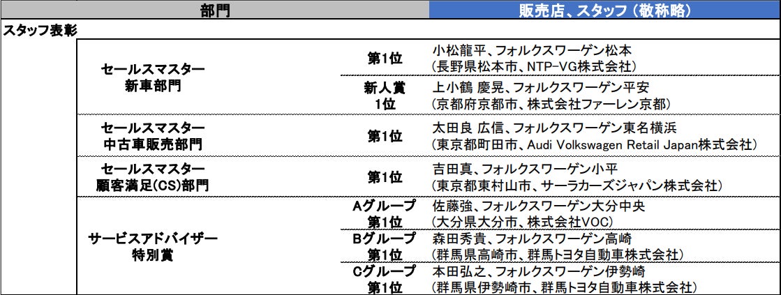 【2024年 フォルクスワーゲン表彰の主な受賞販売店及びスタッフ】