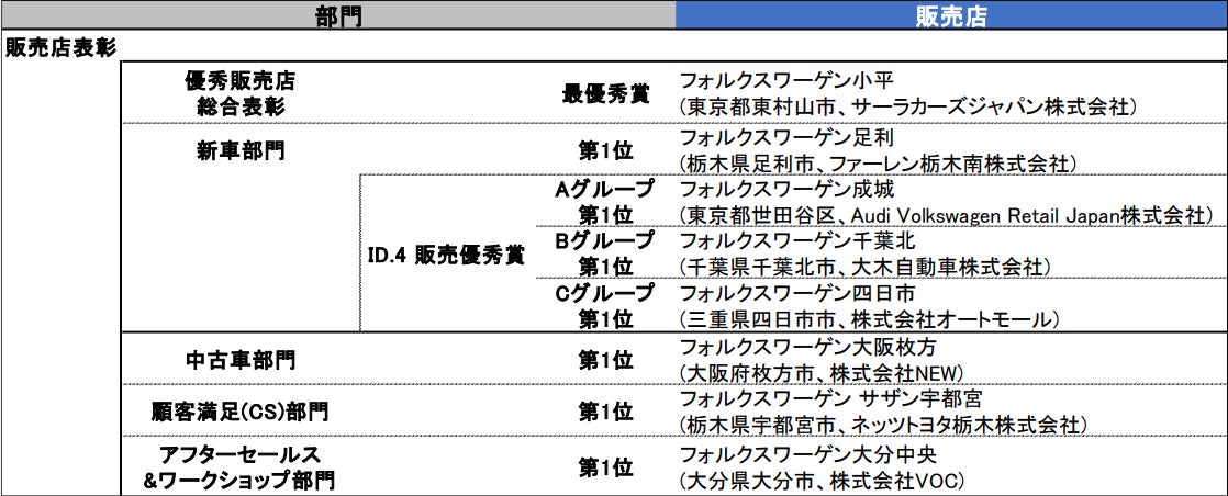 【2024年 フォルクスワーゲン表彰の主な受賞販売店】