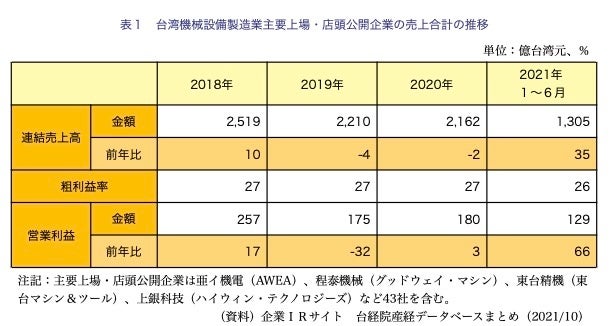 また、中小企業と従来型産業メーカーを中心とする台商のUターン投資によって必要となる機械設備は、台湾当産業が提供できる製品であるため、22年の台湾当産業の販売額は成長を続ける見通しだ。