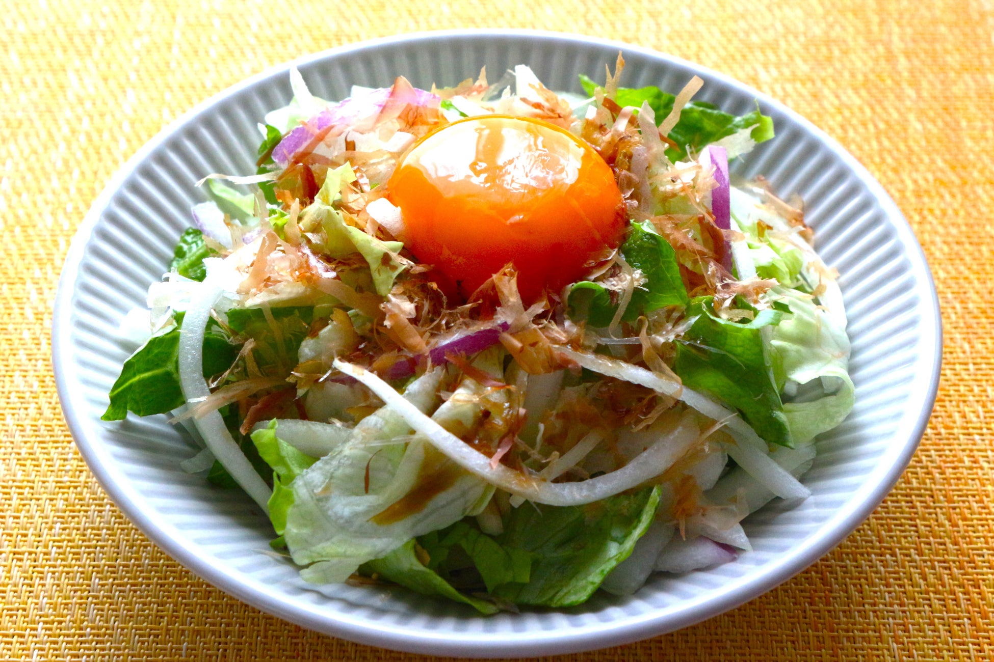 シャキッとしたオニオンスライスに濃厚な卵黄がとろりと絡んで美味しさ抜群!おつまみにもおすすめです。
