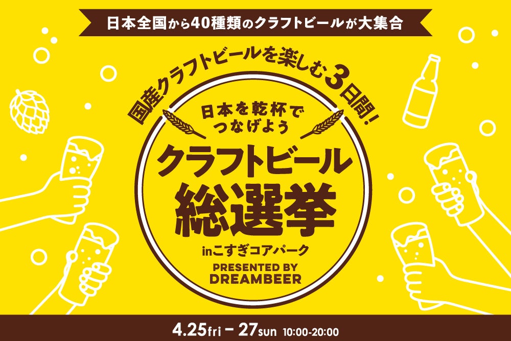 株式会社DREAMBEER(本社:東京都渋谷区 代表取締役:萩尾 陽平)は、4月25日(金)~4月27日(日)の3日間、こすぎコアパークにて、ビールイベント「クラフトビール総選挙2025」を開催いたします。ドリームビアでは現在90ブルワリー260銘柄以上をお取り扱いしておりますが、今回はパートナーブルワリー4社との共同開催にて、合計40銘柄をご提供いたします。