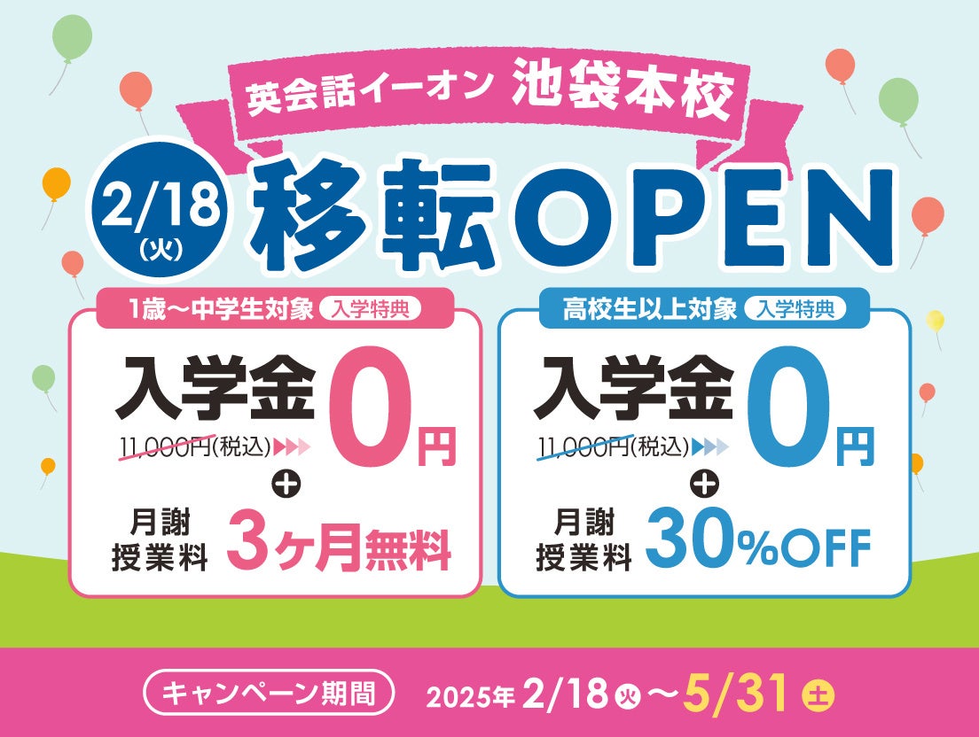英会話教室を運営する株式会社イーオン(本社:東京都新宿区、代表取締役社長:重野卓、以下「イーオン」)は、2025年2月18日にイーオン池袋本校を移転オープンいたします。