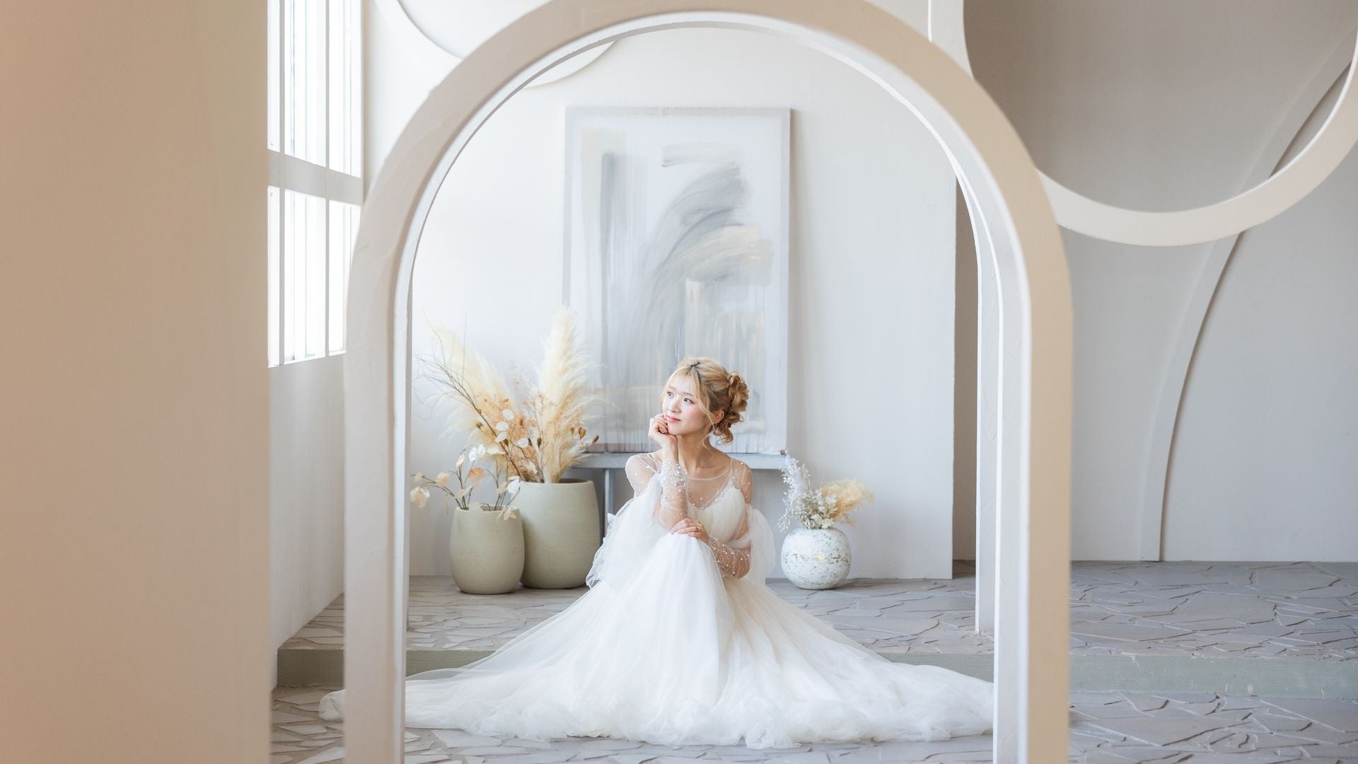 アンシャンテ名古屋は、洗練された世界観を大切にしたおしゃれなスタジオ空間と、自然光を活かした高品質な撮影を特徴としています。さらに、経験豊富なフォトグラファー・ヘアメイクアーティストが在籍し、高い撮影技術とヘアメイク技術によって、おふたりの魅力を最大限に引き出します。