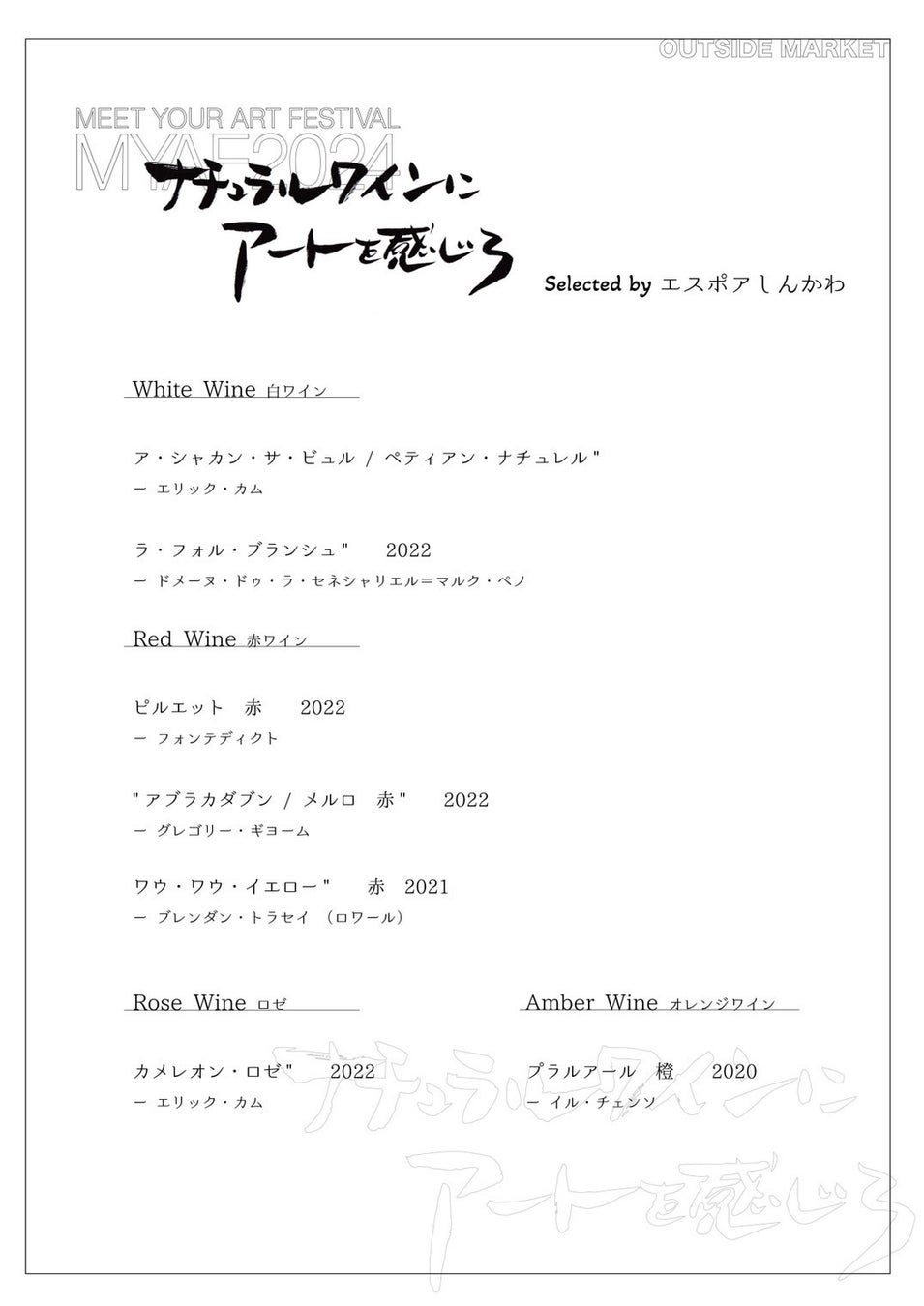 様々なカルチャーが交差するWALL_alternativeの視点で切り取った、MYAF2024出展アーティストの作品展示に加え、マーケットエリアで提供された限定フードやナチュラルワインを提供