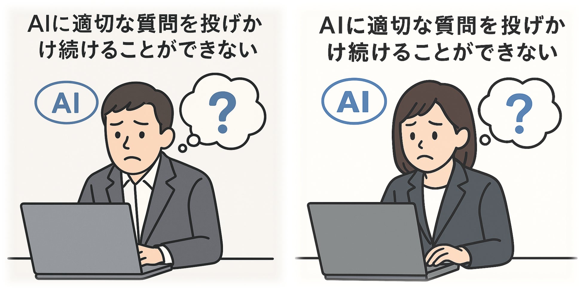 「言われた事しかやってくれない」「作業から仕事へ」。この問題は以前からありましたが、生成AIが普及する中で、作業している社員・仕事をしている社員が、明確に顕在化されています。作業をしている社員は、生成AIに問いを続けることができない。