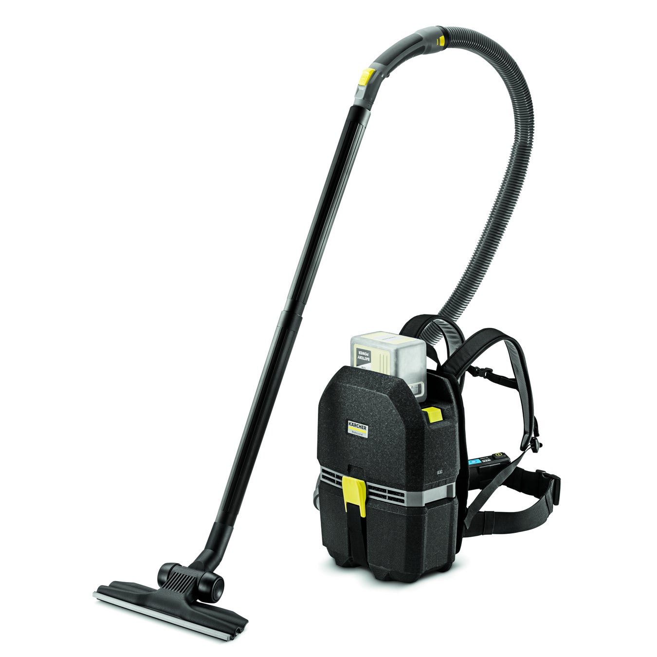 バッテリー仕様のコードレス背負式クリーナー。超軽量、耐衝撃性に優れたEPP(発砲ポリプロピレン)素材を使用し、人間工学に基づいた背負式デザインは、作業者の身体的負担を軽減します。コード式掃除機のような作業中のコンセント差し替えやコードさばきが不要なので、狭い場所や段差のある場所でも簡単に作業でき、時間の短縮と効率性をアップします。従来モデルより小型のタンクと軽量ノズルを採用、小柄な方にも扱いやすい設計です。