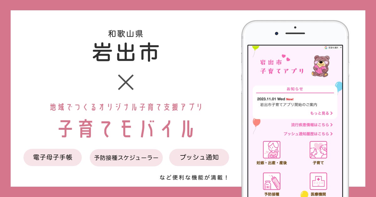 ミラボ、和歌山県 岩出市で子育て支援アプリ「岩出市子育てアプリ」提供を開始し、伴走型相談支援の強化へ
