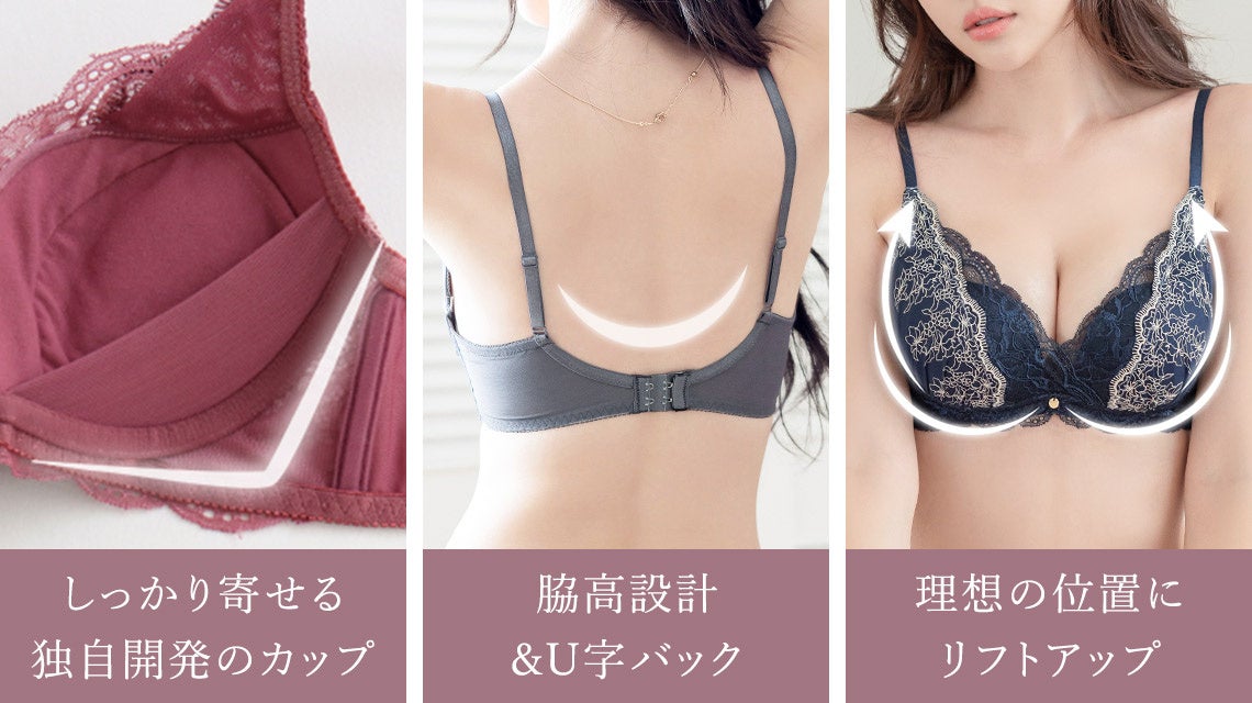 下だけでなく左右からバストを寄せ上げてくれるため、綺麗な谷間を作ることができます。