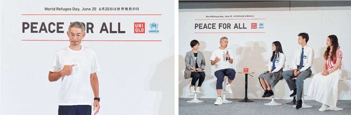 ユニクロのチャリティTシャツプロジェクト「PEACE FOR ALL」は、2022年6月の始動から3周年を迎えました。これを記念して、6月20日(金)の「世界難民の日」に「PEACE FOR ALL」の新たなコラボレーターであるイチロー氏をお迎えし、国連難民高等弁務官事務所(以下UNHCR)のご協力のもと大阪・関西万博にてトークセッションを開催しました。トークセッションは「好きなことを見つけて扉を開こう」をテーマに、地元関西の高校生と大学生を招待し、偉大な野球界のレジェンド、イチロー氏が夢や目標に向かって頑張っているベネズエラ難民の少年野球チームや学生にエールを送りました。