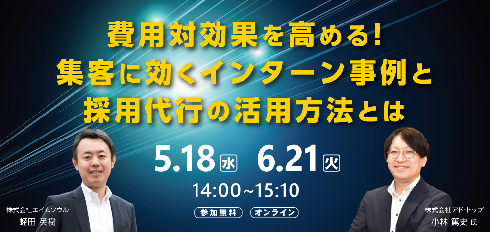 ≪5/18(水)・6/21(火)開催≫ WEBセミナー“費用対効果を高める!集客に効くインターン事例と採用代行の活用方法とは”