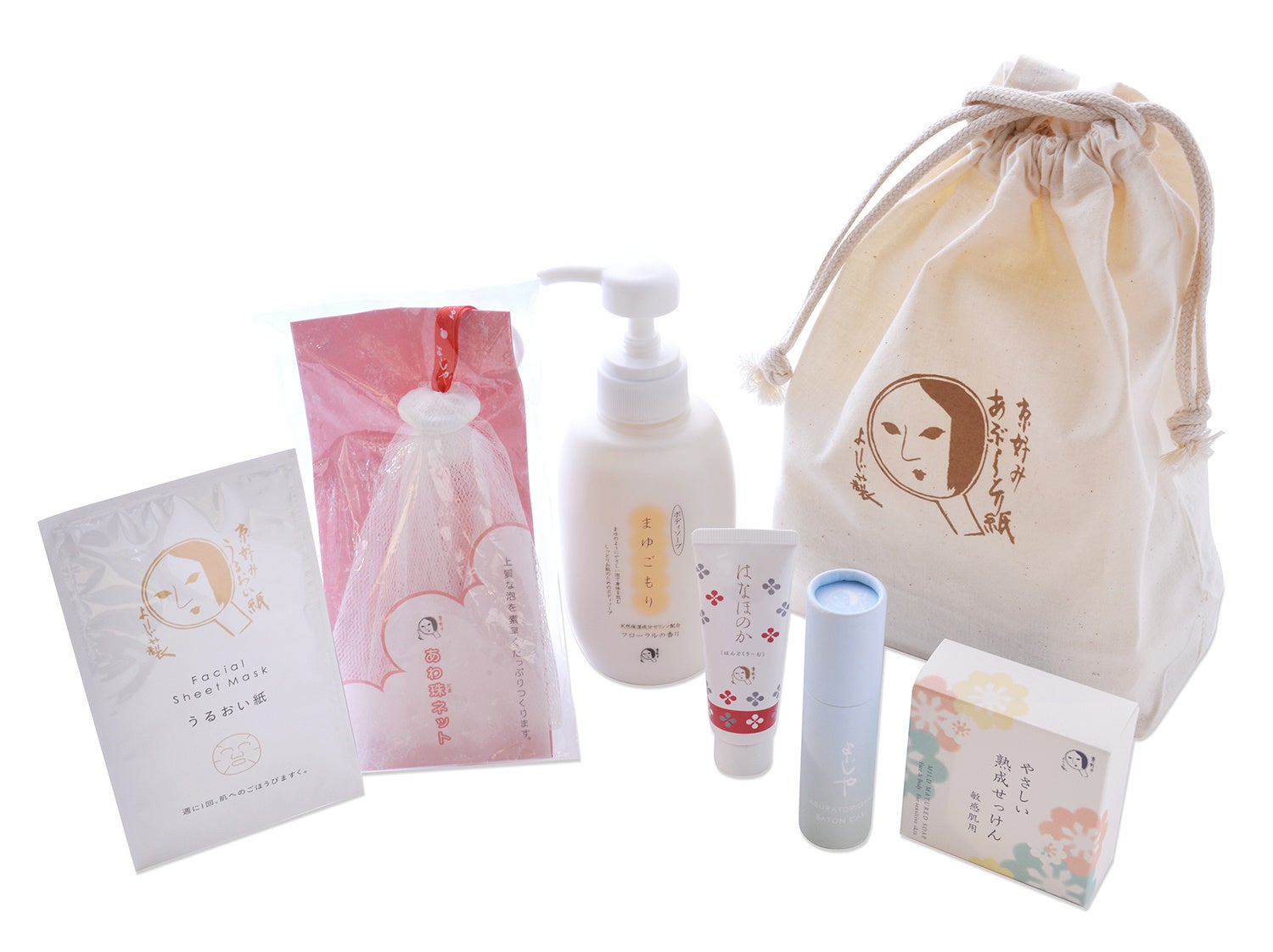 さらに、昨年直営店舗でたいへんご好評いただいたひんやりアイテムや、数量限定で「鶴屋百貨店限定セット」も販売。よーじやロゴがデザインされた非売品の巾着に、人気のハンドクリームや石鹸などの日常使いできるアイテムを詰め込みました。