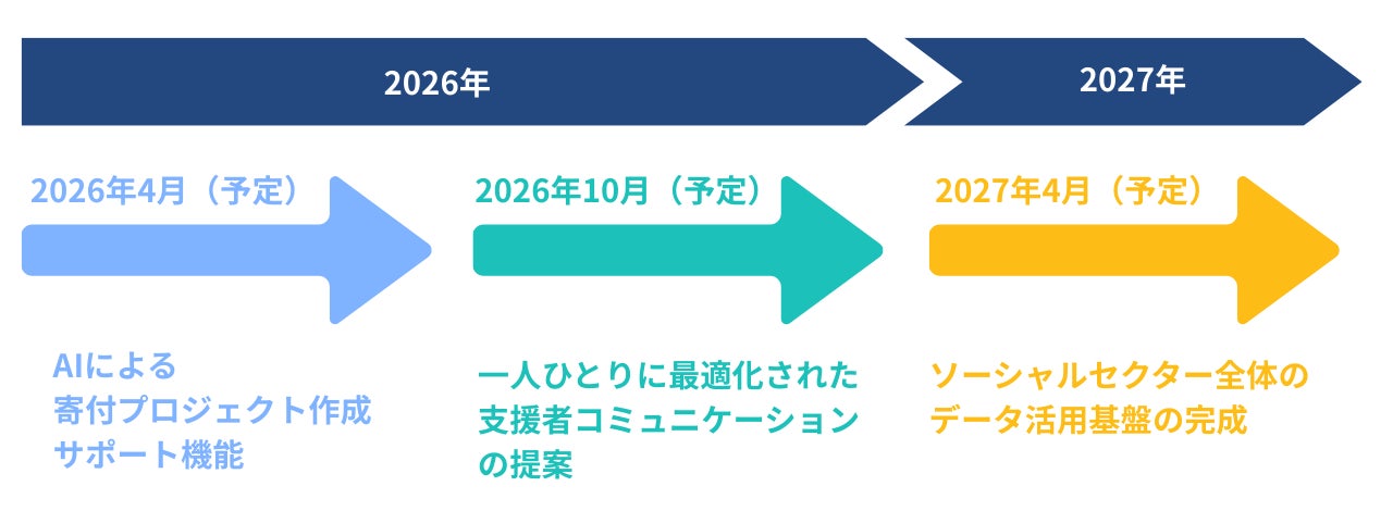 段階的に機能をリリースし、NPO・ソーシャルセクターの成長を継続的に支援します。