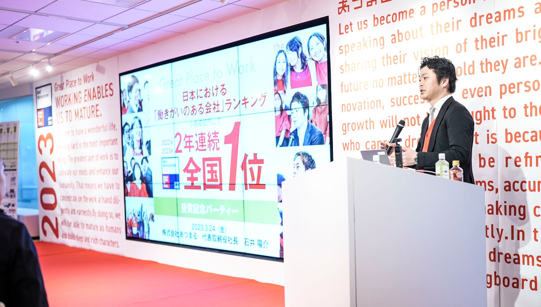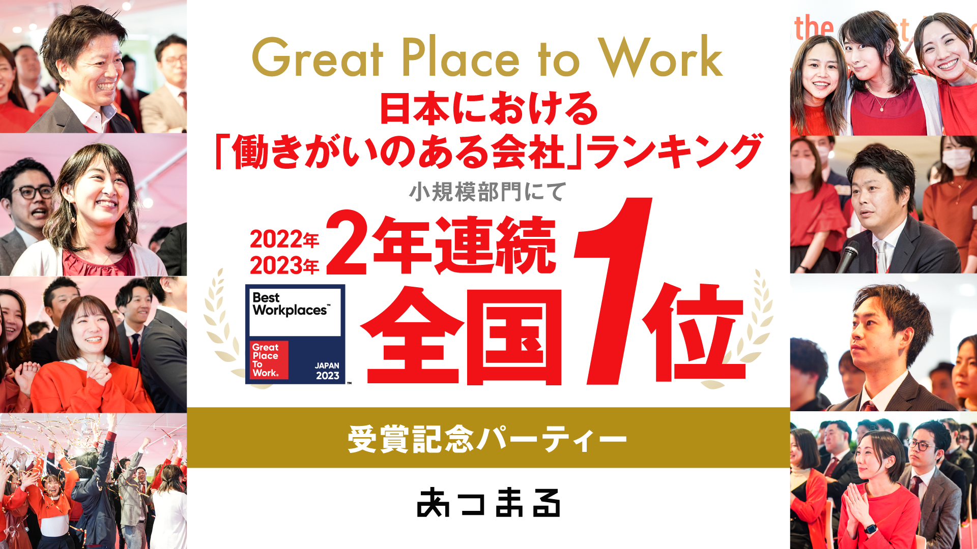株式会社あつまる(東京都渋⾕区、代表取締役社⻑:⽯井 陽介、以下あつまる)は、3月24日、Great Place to Work® Institute Japan が世界共通の基準で調査分析を⾏う、2023年版 ⽇本における「働きがいのある会社」ランキング第1位を記念し、受賞記念パーティーを開催いたしました。