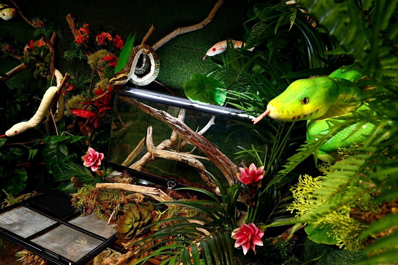 植物や岩など、本物さながらの環境で蛇たちの自然な姿を観察できるのと同時に、自然環境だけでは再現が難しい蛇の隠れた魅力を、人工環境で補完することで余すことなく伝えます。