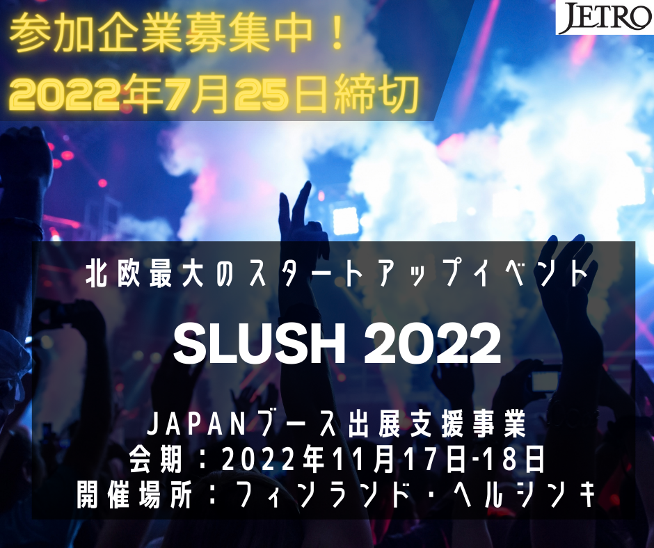 ジェトロは、フィンランド発スタートアップイベント「SLUSH2022」にJAPANパビリオンを設け、デモブース出展やピッチ機会の提供等を通じ、日本のスタートアップの東南アジアでの展開を支援します!