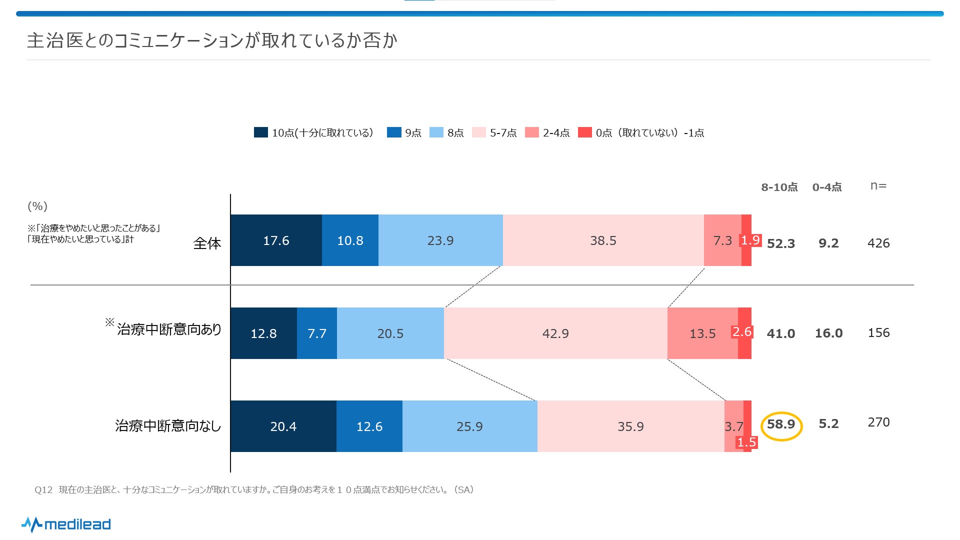 主治医との十分なコミュニケーションが取れている患者は、治療を継続する意向が高いことがうかがえる。〈図2〉
