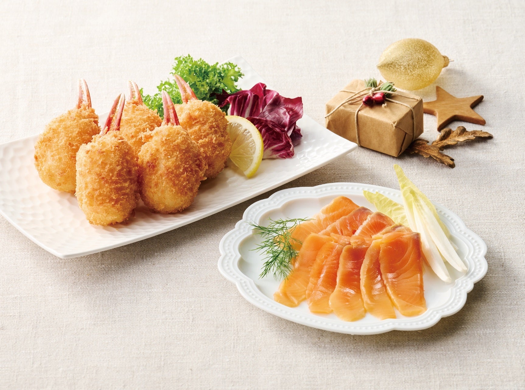 ●商品内容:かに爪クリームフライ(5個)、スモークサーモンスライス(トラウト)80g