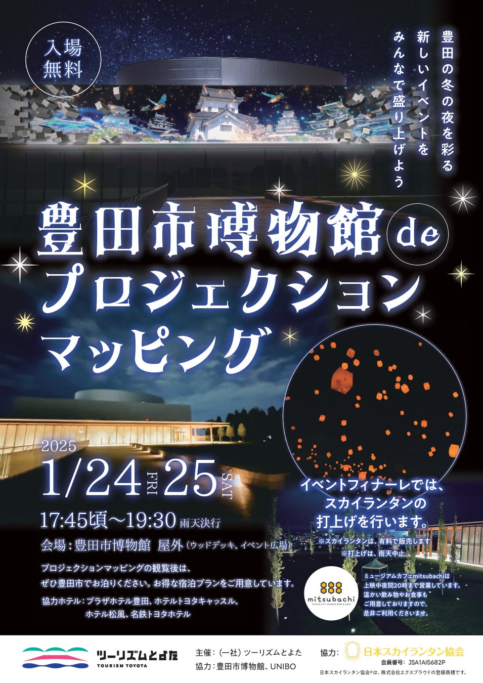 【UNIBO×ツーリズム豊田】1月の夜を彩る2日間の限定イベント!豊田市博物館deプロジェクションマッピング
