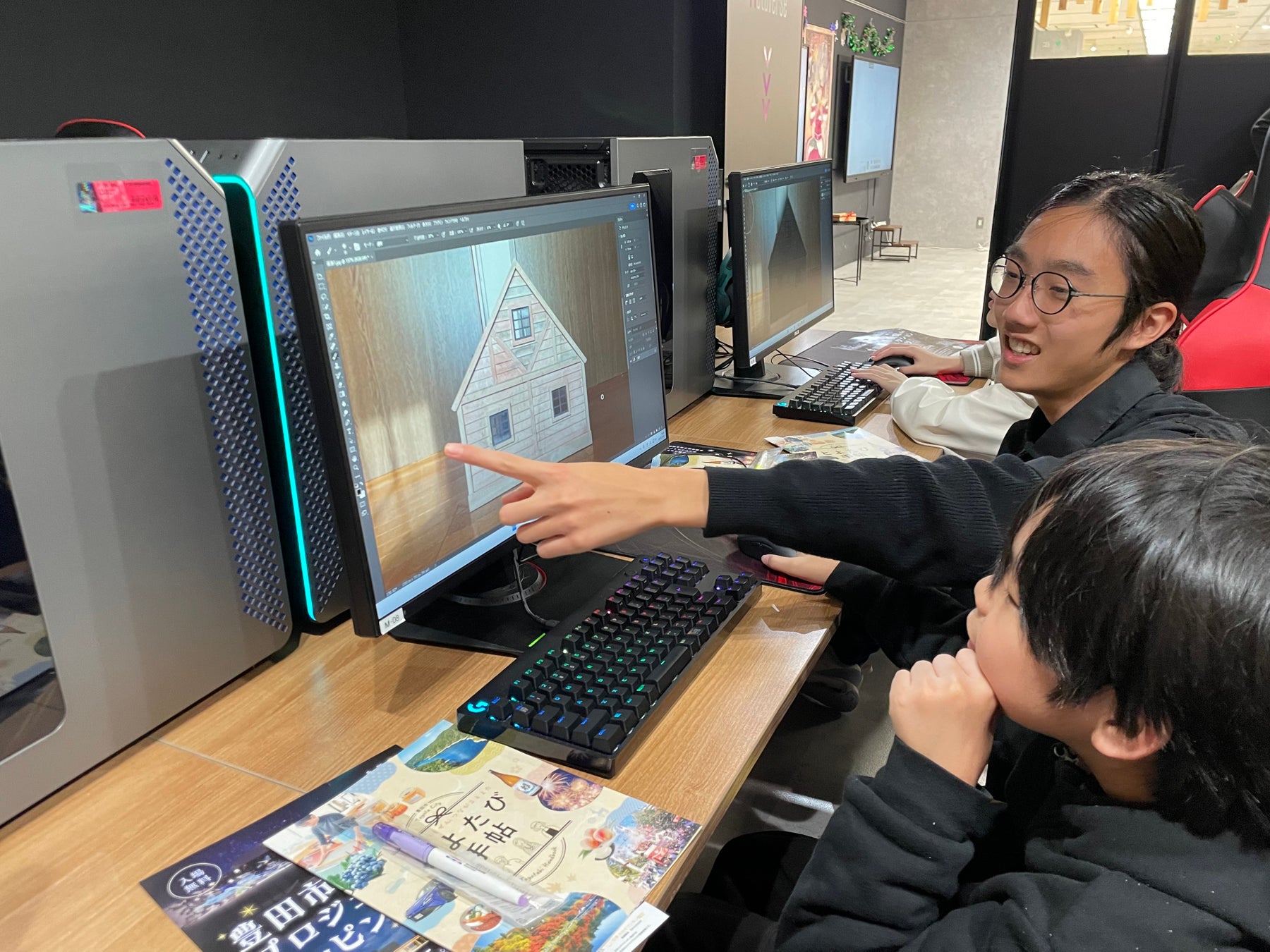 皆さんはプロジェクションマッピングという技術をご存知ですか?建物の外壁などに映像を投影して楽しむ現代アートの一つです。今回は、UNIBOフリースクールの生徒が、このプロジェクションマッピングに初チャレンジ!豊田の夜を鮮やかに彩る作品を、児童生徒がデザインソフト「PhotoShop」を使って制作しました。