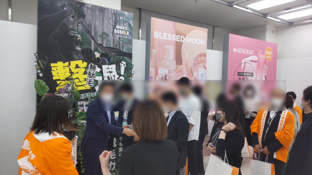 夏の脱毛シーズンピークを前に、男性スキンケアの啓蒙と男性脱毛ブームの盛り上がりについて多くの来場者に紹介を行いました。スキンケアの前段階としても体毛ケアが注目されています。メンズゴリラのブースでは鼻毛用・ボディ用の脱毛、除毛クリーム、アフターケアジェルを配布しました。