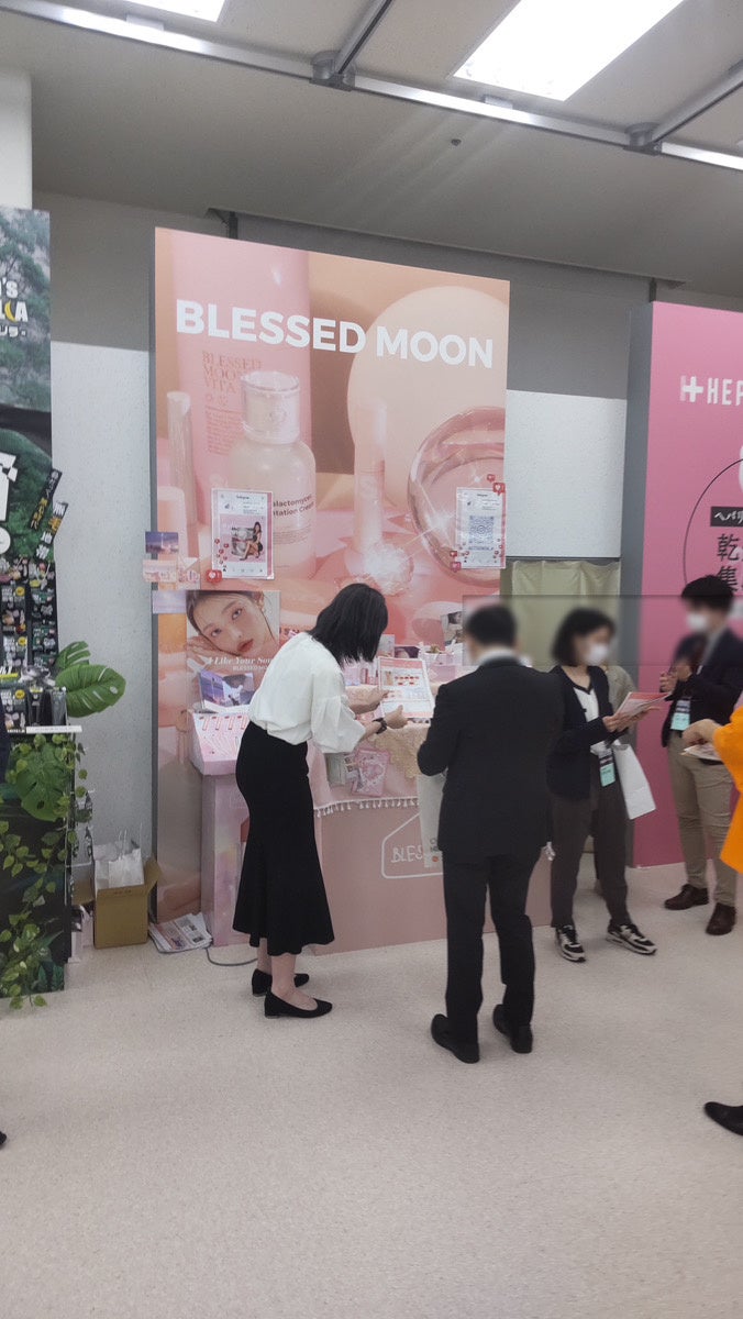 全国流通企業向けとして国内初めての公開の場となりました。オフライン、オンラインともに正規総代理店である武内製薬株式会社がプロデュースすることで、日本の消費者にマッチしたラインナップと日本の流通環境に最適化した商品規格を実現しました。韓国ブランド側からのバックアップを受けつつ日本独自の取り組みを推進しています。BLESSED MOONのブースではバイヤーなどへリップの日本の先行販売色などを配布しました。