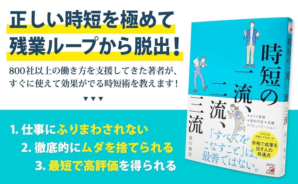 本書では、そうした各企業の一流から分かった「時短術」を、三流、二流と比較しながらわかりやすく紹介しています。