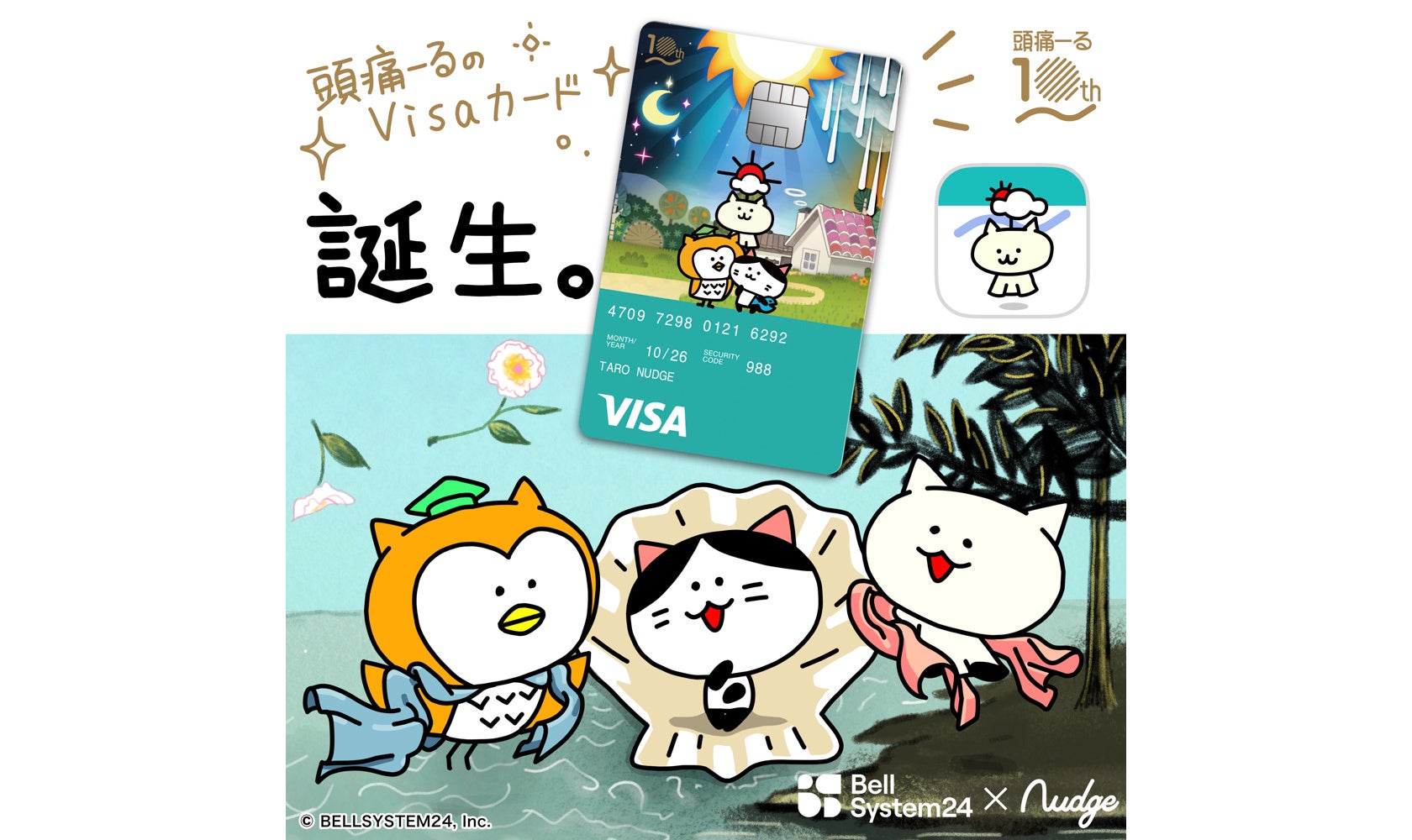 また、「頭痛―る」のサービス開始10周年を記念して、SNSでも人気の「頭痛―る」のキャラクター「ふくろう博士」「マロ」「てるてるネコ」のイラストを使用したオリジナルデザインの公式クレジットカードを発行いたします。期間限定で、発行手数料が無料となる特別キャンペーンも開催しますので、ぜひご利用ください。