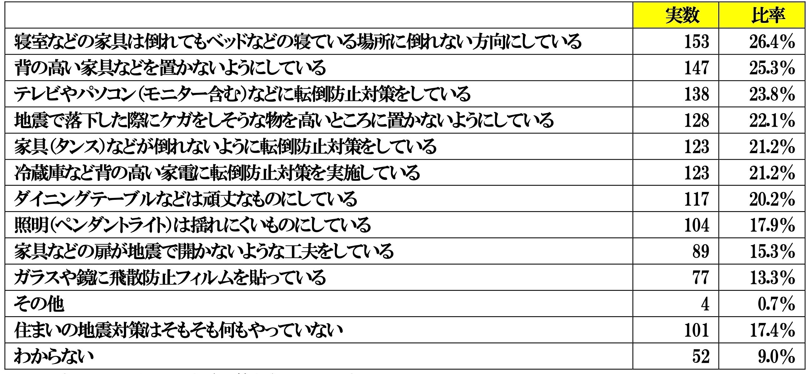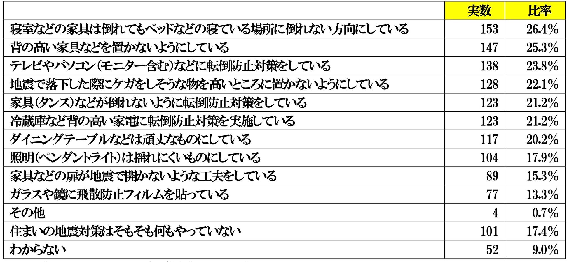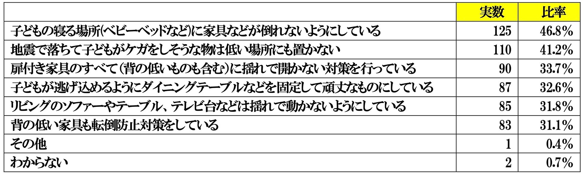 ※Q2で「子ども目線で住まいの地震対策をすべて行っている」「すべてではないが子ども目線で住まいの