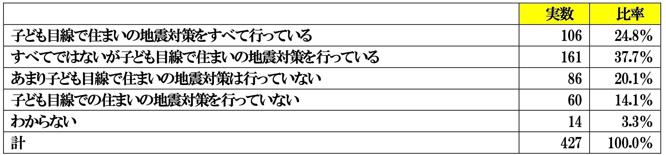 → お住まいの地震対策において子ども目線でも対策を行っている方は、子ども目線で住まいの地震対策を